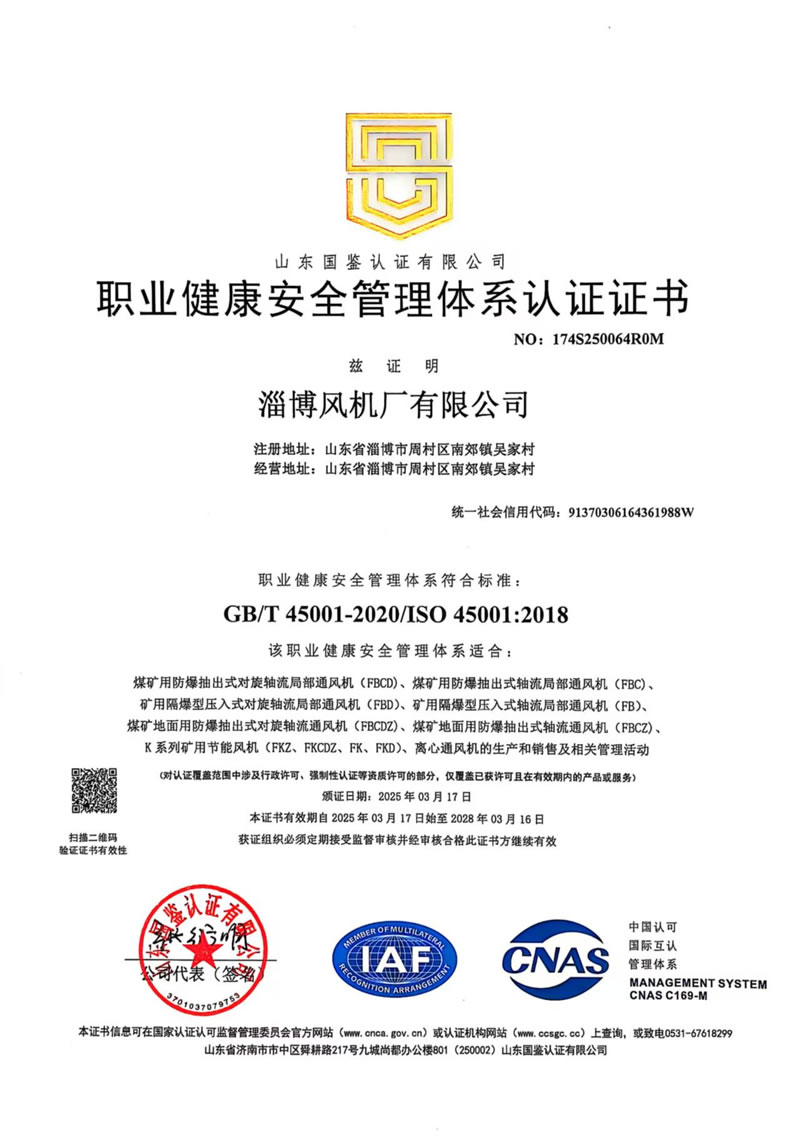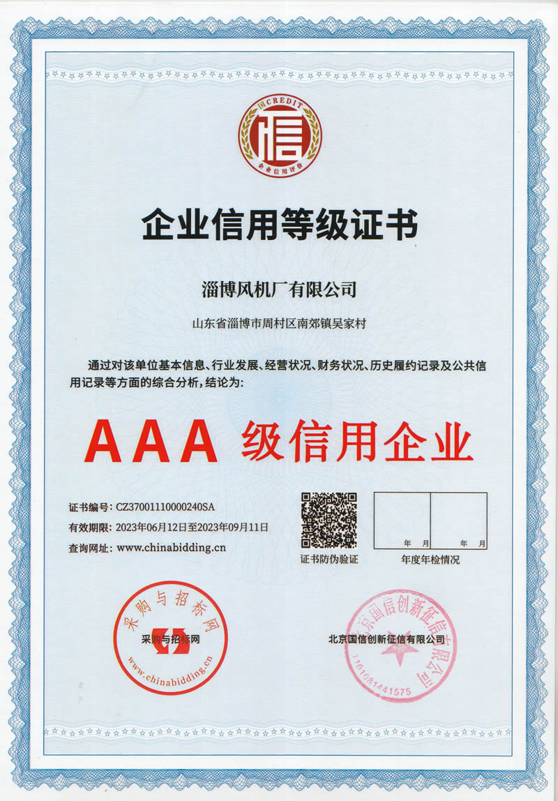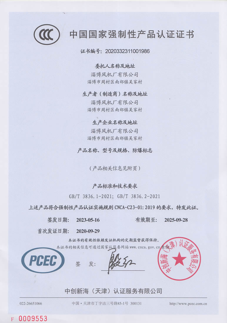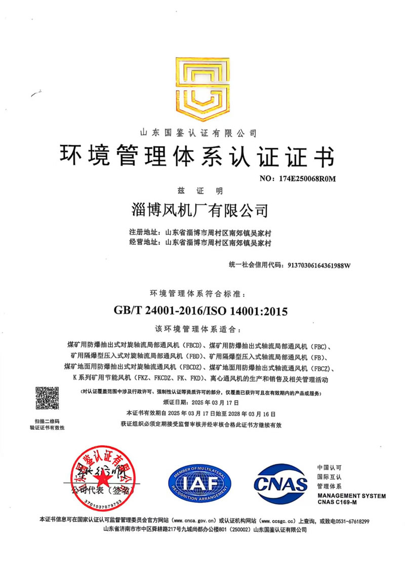 熱烈慶祝:一、淄博風機廠有限公司全系產(chǎn)品通過能效綠色節(jié)能環(huán)保二級認證. 二、 淄博風機廠有限公司通過安全標準化驗收合格. 三、注冊資金增資至7800萬.