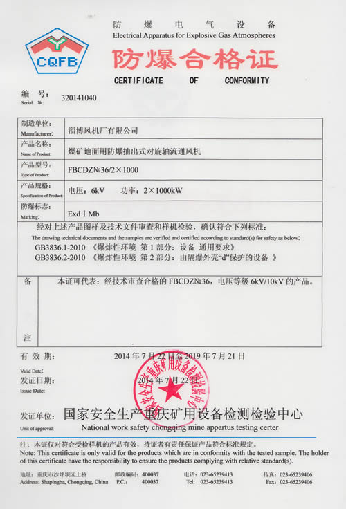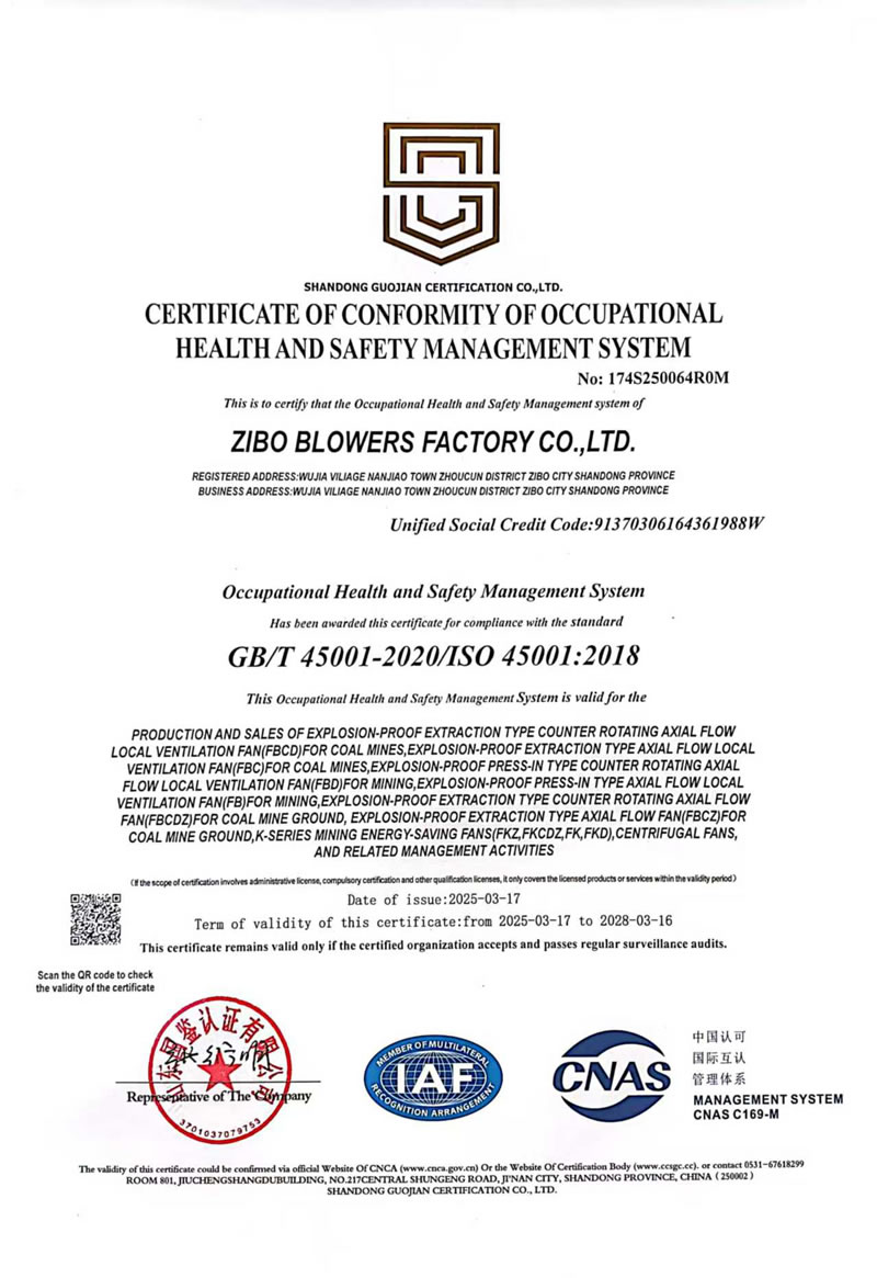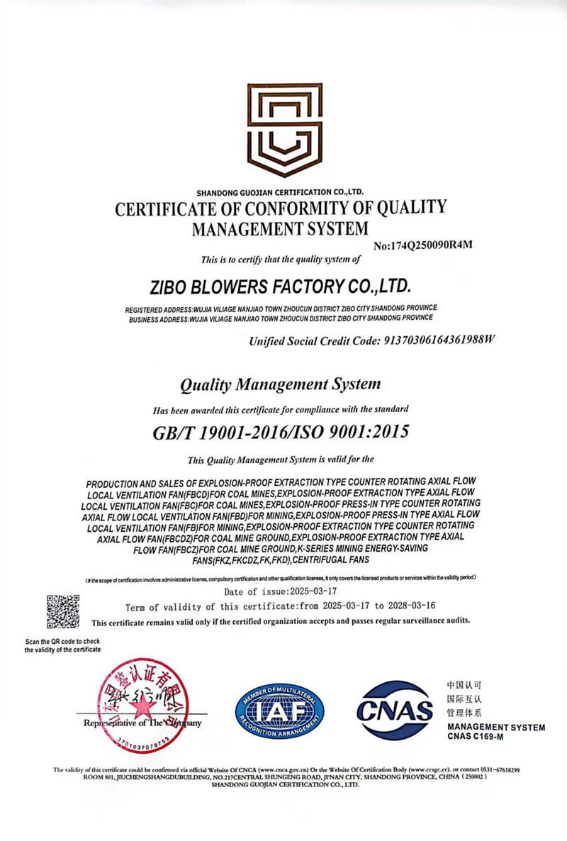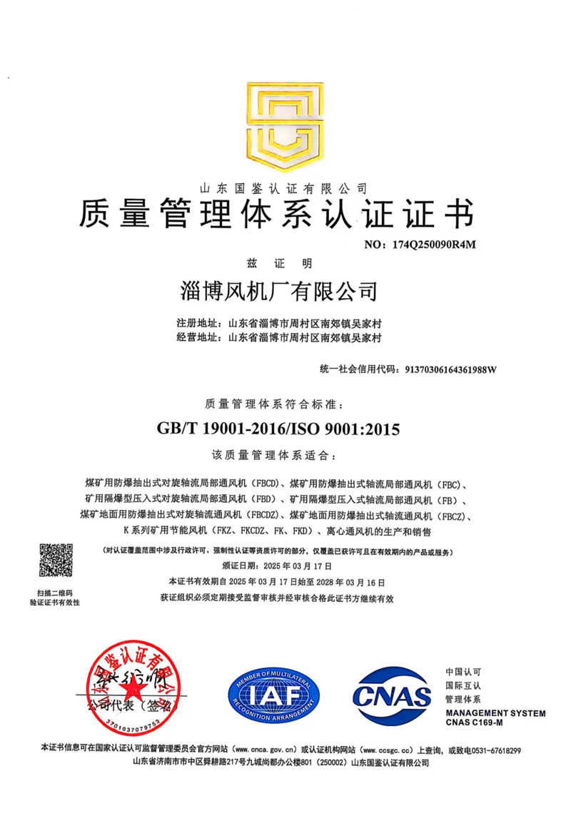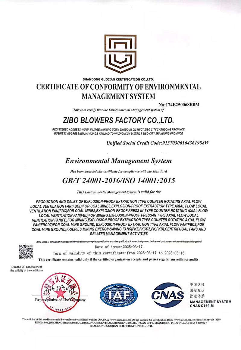熱烈慶祝:一、淄博風機廠有限公司全系產(chǎn)品通過能效綠色節(jié)能環(huán)保二級認證. 二、 淄博風機廠有限公司通過安全標準化驗收合格. 三、注冊資金增資至7800萬.